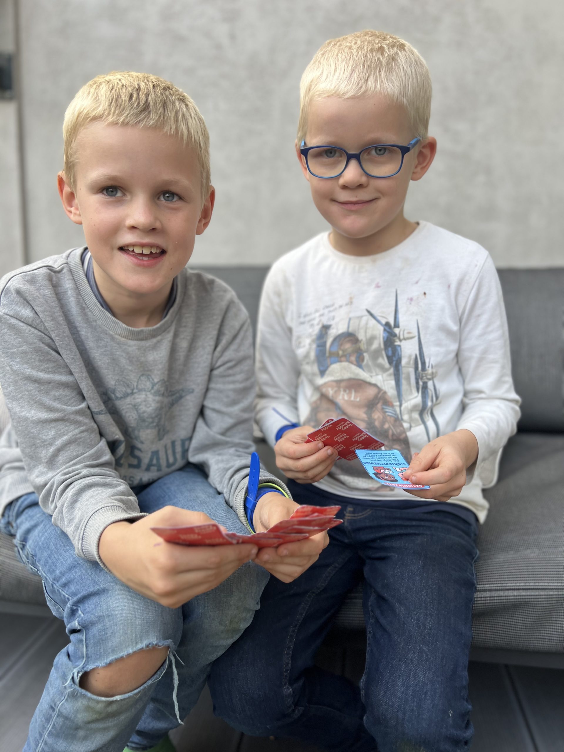Die Spiel-Erfinder Theodor (3. Klasse) und Frederik (1. Klasse) begeistern hunderte von Schülern