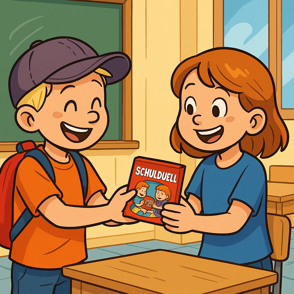 Aus dieser Idee entstand das Kartenspiel SCHULDUELL, dass auch anderen Kindern und Erwachsenen zeigt: Schule macht Spaß! Und dass man auch ganz spielerisch herangehen kann.