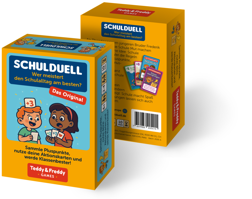 Oder deine Klassenlehrerin oder dein Klassenlehrer ist noch auf der Suche nach guten Spielen im Klassenschrank? Dann mach schnell den Vorschlag, dass das Schulduell nicht fehlen darf!